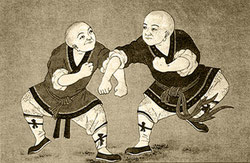 Der Ursprung der Kampfsportart Die ersten Spuren der verschiedenen Techniken von Faust- und Fussschlägen führen zurück bis ins alte China zu einem buddhistischen Mönch namens Bodhidharma (auch bekannt unter dem Namen Daruma (aus dem japanischen), oder Da Mo). Bodhidharma kam ursprünglich aus dem Indien des VI. Jahrhunderts und lies sich im berühmten "Kloster des kleinen Waldes" (Shao Lin Shi auf chinesisch, oder Shorinji auf japanisch) nieder. Hier zeigte er den anderen Mönchen die ersten Schlagtechniken bekannt unter dem Namen "Chinesisches Boxen" (Shaolin-chuan) oder auch (quanfa -Methode der Faust), anwendbar im Kampf ohne Waffen. Das Kloster wurde im Laufe der Jahrzehnte in ganz China immer berühmter für seine gefürchteten und gleichzeitig geachteten Kampfkünste.