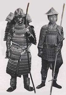 Zwei Samuraï in Rüstung mit Waffen