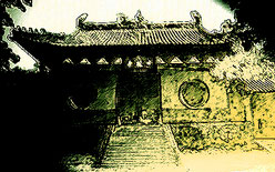 Hier ein Bild der Eintrittspforte des Shaolintempel im Zentrum der chinesischen Provinz von He Nan. Dieser Tempel wird als Wiege der chinesischen Kampfkunst angesehen, die den Karate von Okinawa stark beeinflusst hat. 495 n.Chr. ließ Kaiser Hsiao-Wen den Tempel bauen. In der westlichen Welt waren die chinesischen Kampfkünste (Wushu ou Kuoshu) lange Zeit unter dem Namen "Kung-Fu" bekannt. In Japan wurden sie "Kempo" genannt.